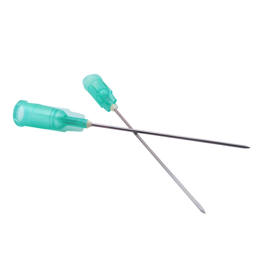 إبرة للاستعمال مرة واحدة بقياس G18 X 1.5 بوصة، معبأة في تغليف معقم. كل إبرة مغلقة بشكل منفصل لضمان النظافة والأمان. هذا التعبئة تحافظ على استريلية الإبر وتضمن استخداماً آمناً وفعالاً، مثالية لمختلف الاستخدامات الطبية حيث تتطلب الدقة والنظافة العالية.